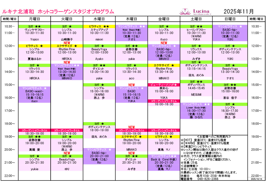 11/5(水)15:00~ | コラーゲンヨガ シンプル | 西上歩→山﨑陽子 |