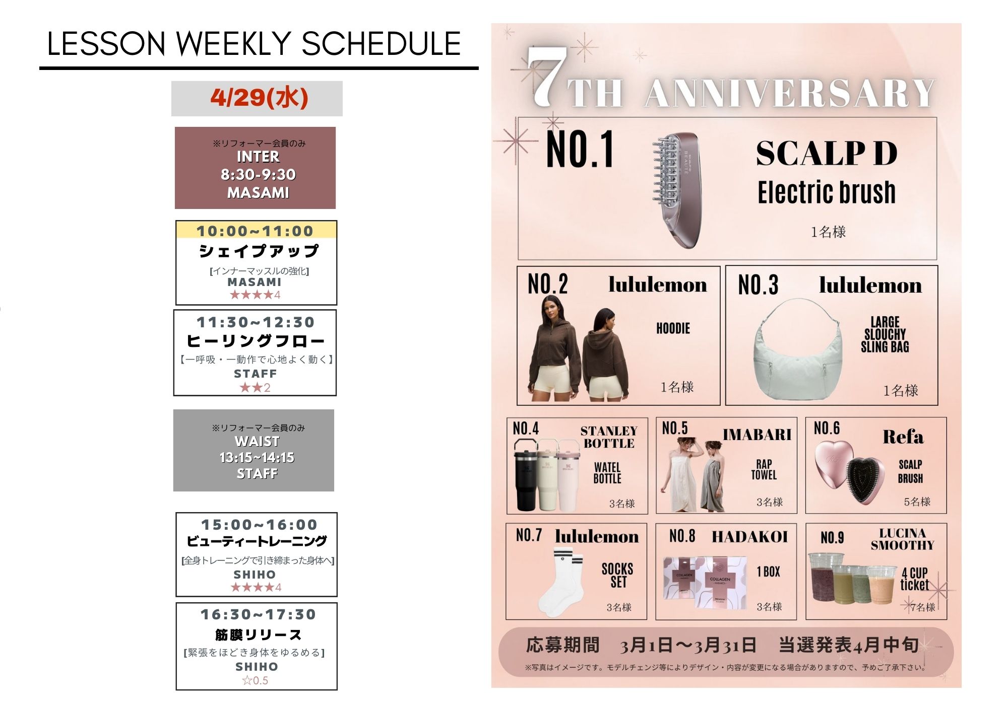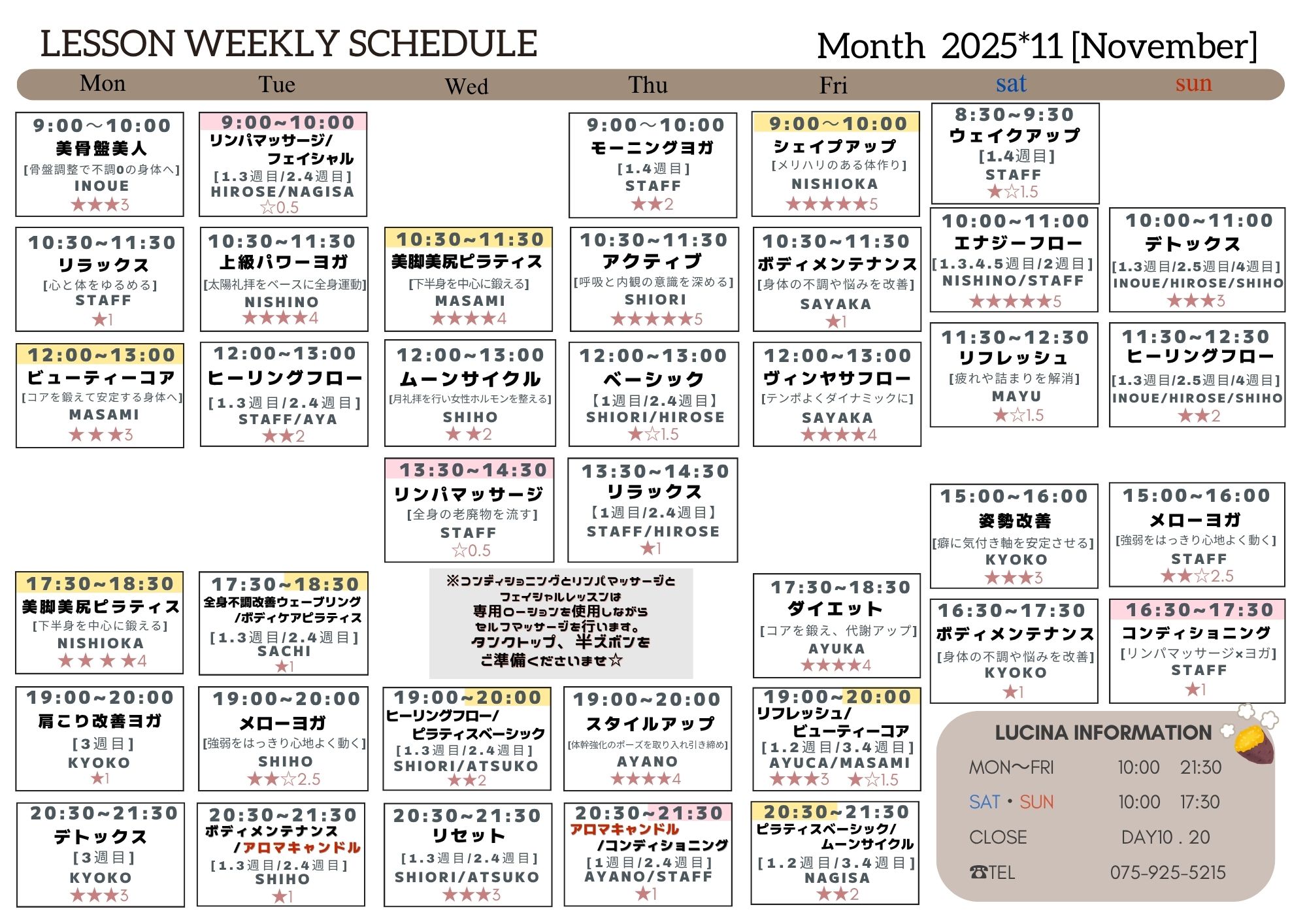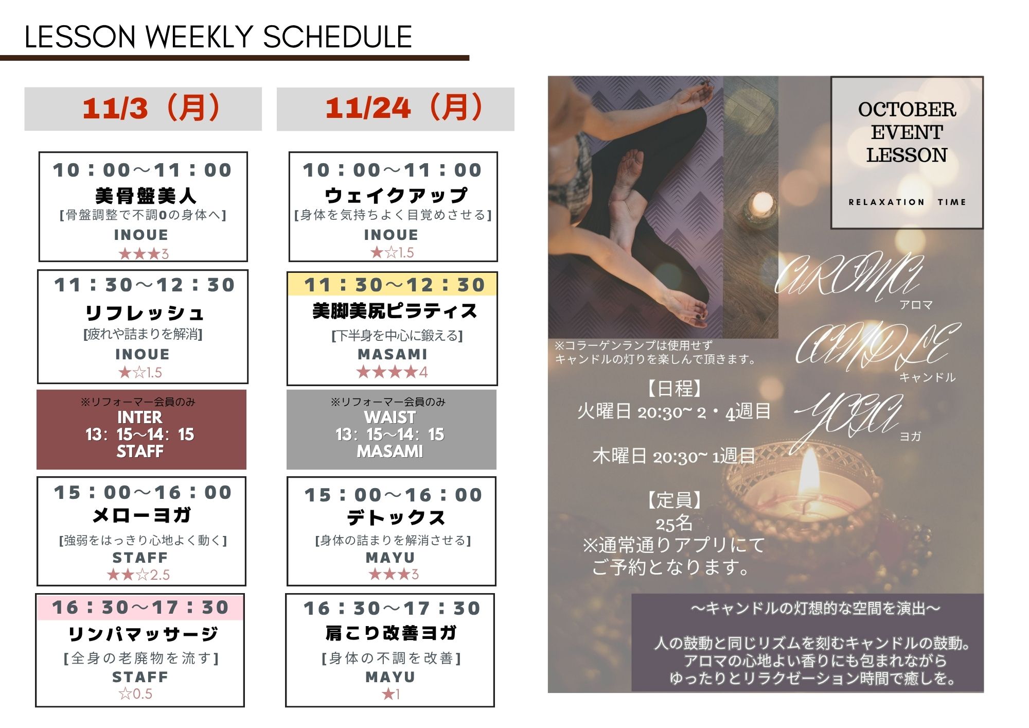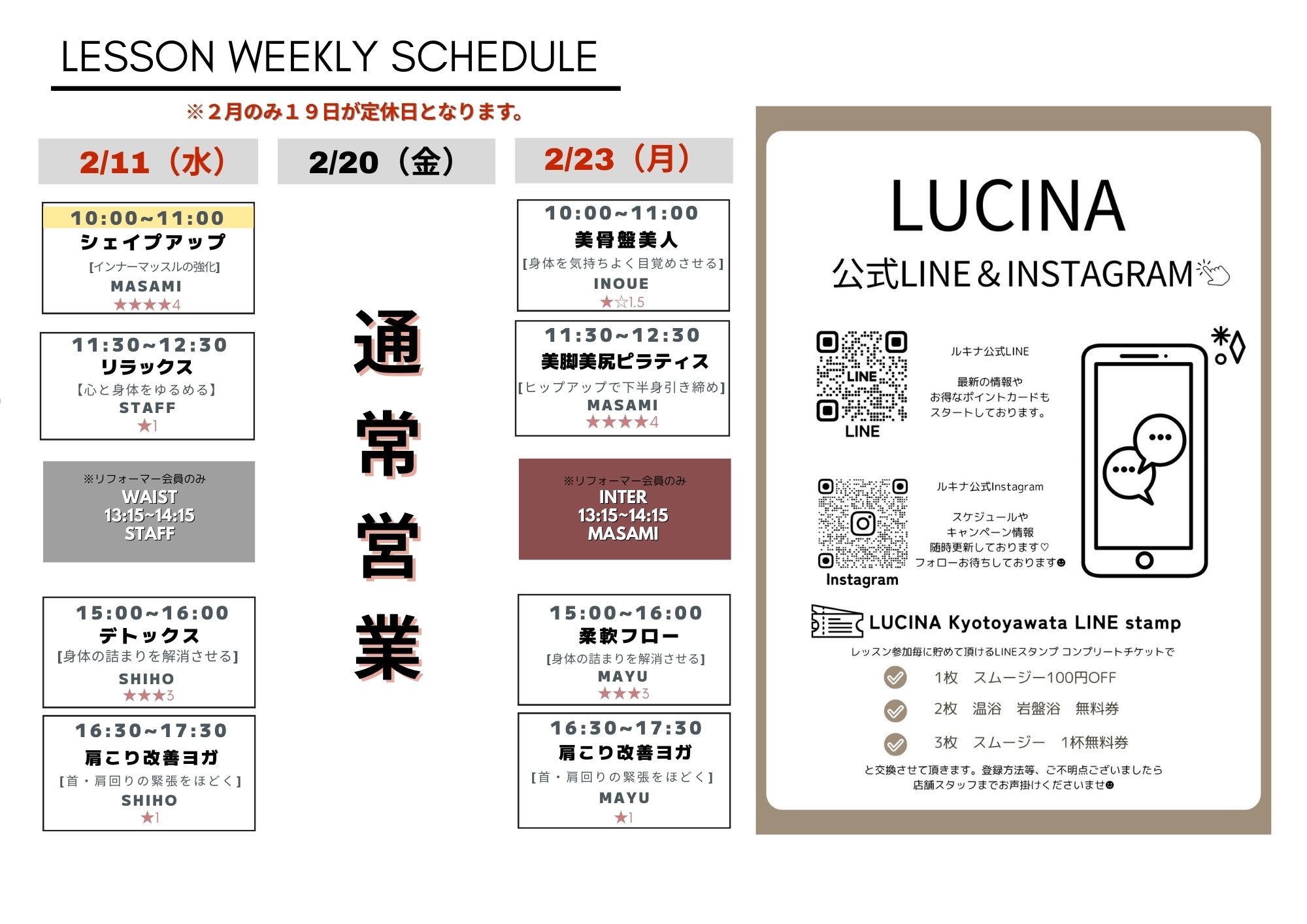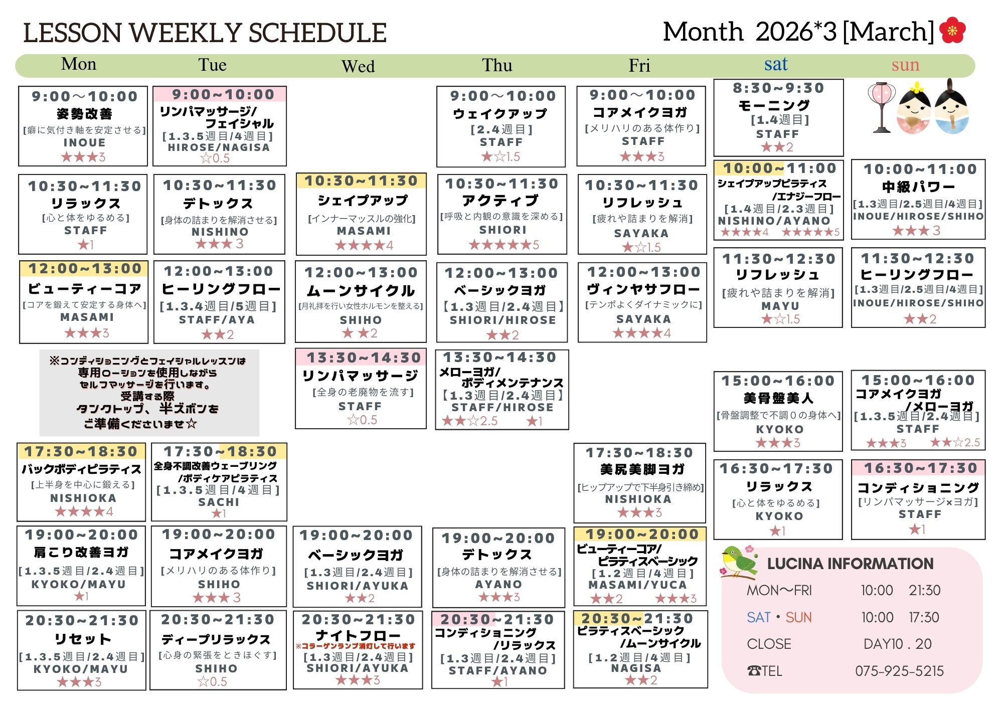☑代行・クラス変更情報は館内のインフォメーション又はHPをご覧下さい。